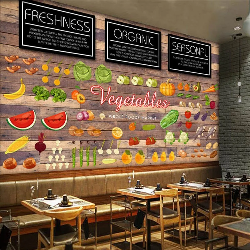 Us 12 61 30 Off Photo Wallpaper Europe The United States Fashion Wood Mural Vegetable Fruit Shop Background Wall Kitchen Wallpaper In Wallpapers