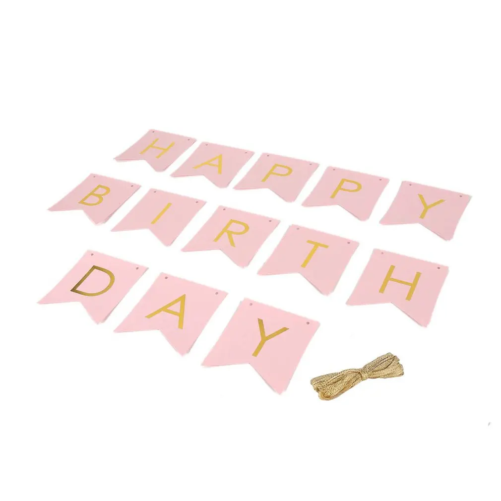 Us 0 64 23 Off 2 M Party Banner Paper Pink Happy Birthday Wedding Hanging Bunting Decoration Accessory On Aliexpress