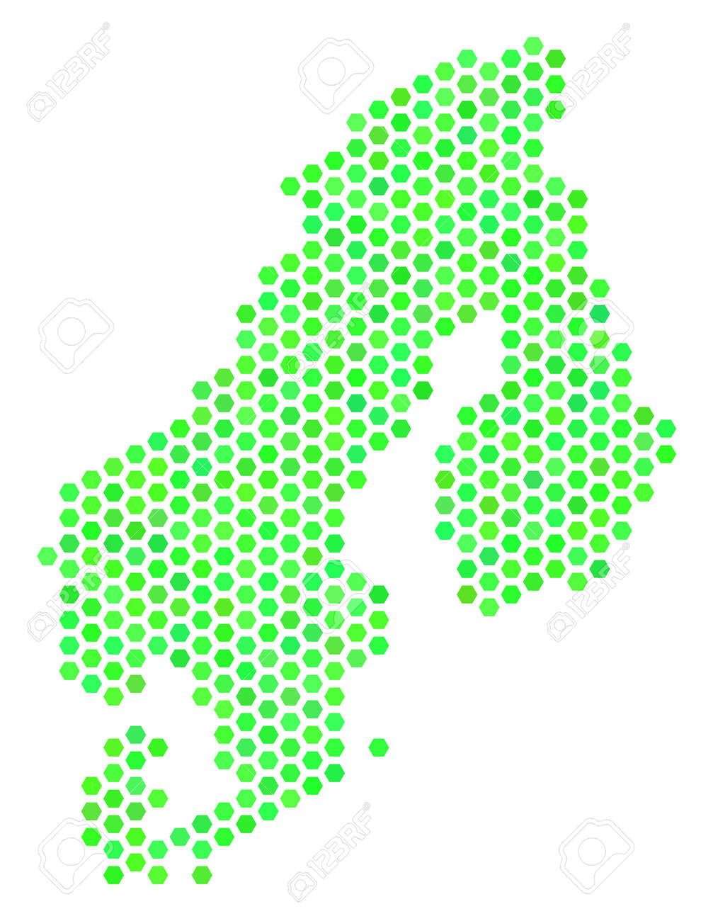 Green Scandinavia Map Vector Hex Tile Geographic Map Drawn With