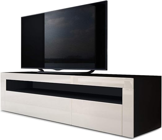 Vladon Tv Stand Unit Valencia Carcass In Black Matt Front In Cream High Gloss With A Frame In Cream High Gloss